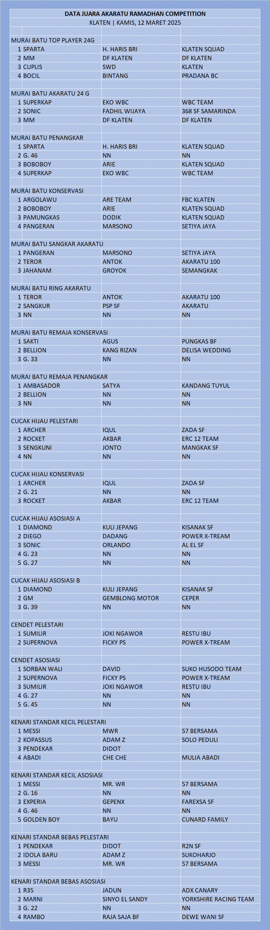 Berikut ini data juara Akaratu Ramadhan Competition selengkapnya!