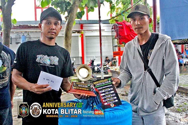 “Alhamdulillah, kerjanya bisa maksimal, gaya ngeplay, durasi dapat, bongkar lagu, volume lumayan, akhirnya dapat juara satu,” kata Penceng. “Muma murai muda, usia dua tahun, masih juara dilingkup Blitaran saja,” ungkapnya. Kalau rawatan? “Harian jangkrik 15 ekor, diberikan sekali, pemberiannya sewaktu-waktu. Main umbaran seminggu 2x,” jawabnya.