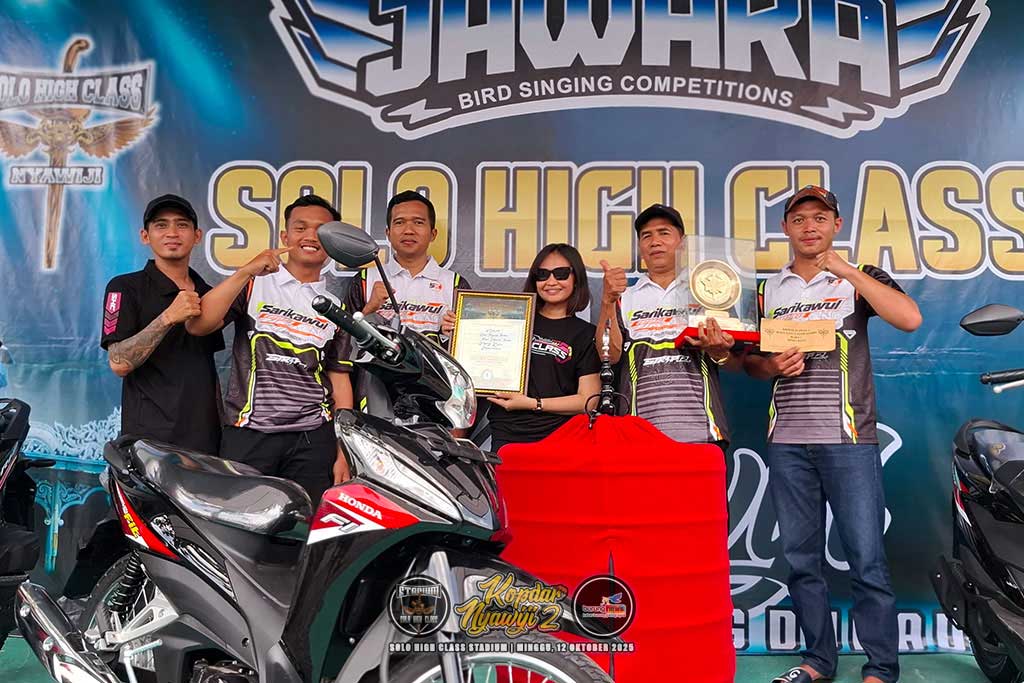 Pertama kali main di Solo High Class Stadium, murai batu Nakula milik Pak Gik - Sarikawul SF Salatiga langsung mendapat hadiah motor setelah meraih juara pertama di kelas Murai Batu Nuswantoro A.