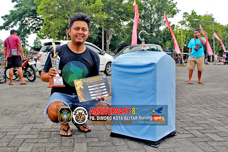 Cucak hijau Rinjadi milik Mr. Boto dari Bendogerit kota Blitar juga merasakan manisnya juara satu. “Alhamdulillah, hanya main satu kali, dapat juara 1 ditiket 55K. Belum berani ngetrek karena habis mabung,” ungkap Mr Boto yang menginfokan kalau Rinjadi pernah juara juga di Latber PB Dimoro dan di event Putra Candi. [Ferry]