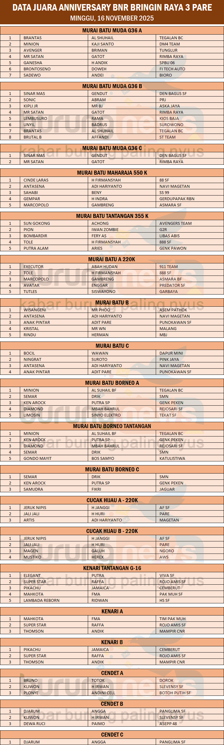 ANNIVERSARY BNR BRINGIN RAYA 3 + DATA JUARA