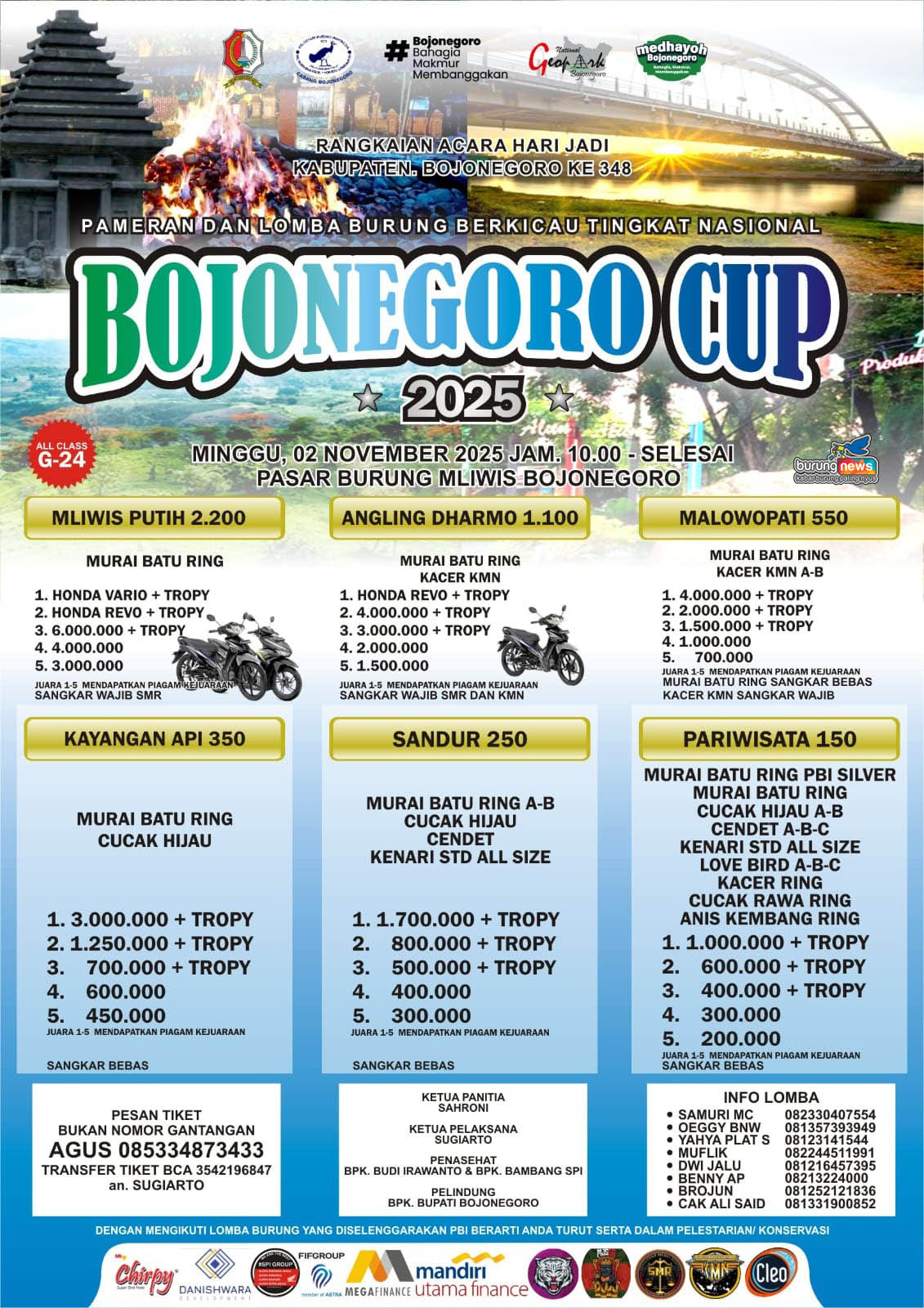 Lomba burung akbar di Bojonegoro pekan ini menyisakan kenangan manis bagi Eddy BF yang menurunkan Radja, Murai Batu andalannya di kelas bergengsi dan sukses menyabet gelar juara.