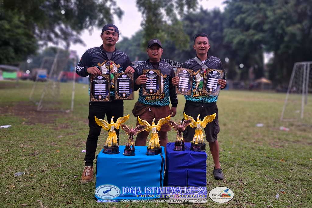 Andalkan Pangeran Biru dan Wul Wul, Aluna SF Sukabumi berhasil memborong sejumlah gelar juara di Jogja Istimewa ke-22. Bersaing dengan gaco-gaco mapan dari berbagai daerah, Pangeran Biru dan Wul Wul meraih juara 1, 1, 1, 2, dan 3.