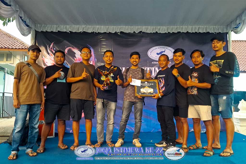 Anniversary Gantangan Warna Warni yang dilaksanakan pada Minggu, 15 Februari 2026 di Assalaam Hypermarket, Kartasura berlangsung sukses. Bondowoso, amunisi andalan Mr. Erfan Adi Mabes 805 SF menunjukkan dominasinya di kelas cucak hijau setelah meraih juar