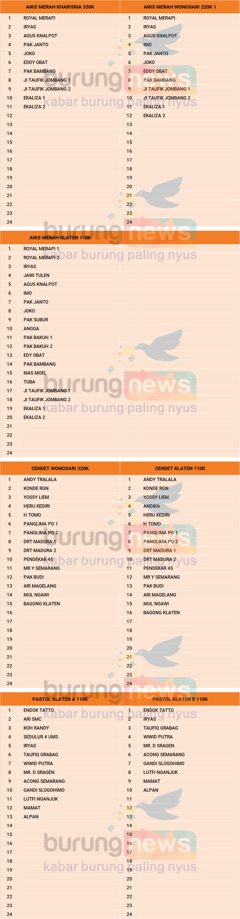 DATA PEMESAN ANIS MERAH, CENDET, PASTOL KLATEN: