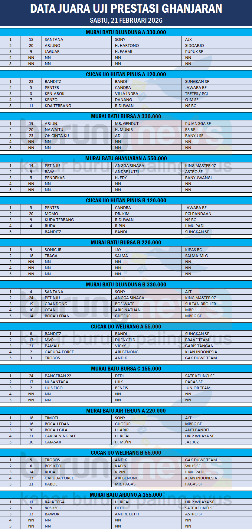 "Ini burung masih Pastol, usia sekitar 7 bulan an. Insyallah akan main nanti di Anniversary Ghanjaran tiket 1,1 juta dan 550K pada 8 Maret," pungkas Andre Astro SF.