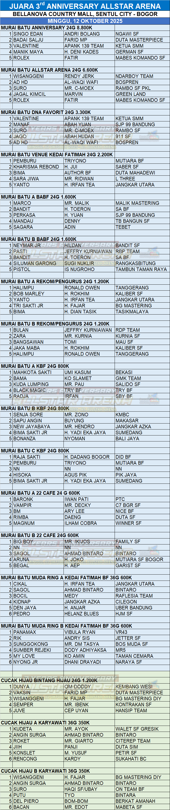 DATA JUARA 3rd ANNIV. ALL STAR ARENA BOGOR