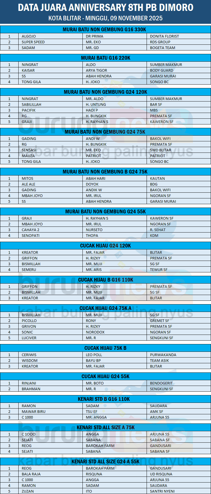 DATA JUARA ANNIVERSARY 8TH PB DIMORO KOTA BLITAR