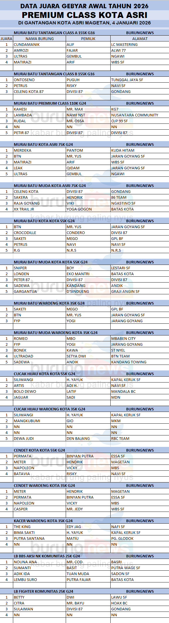 DATA JUARA AWAL TAHUN 2026 PREMIUM CLASS KOTA ASRI MAGETAN