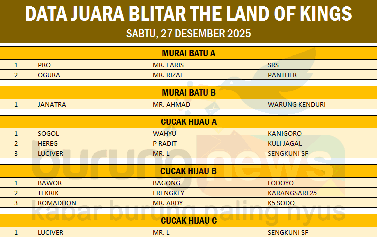 Latber Sabtu rutin Blitar The Land of Kings, Sabtu 27 Desember 2025, di gantangan KRS Enterprise, Karangsono, Kec. Kanigoro Kab. Blitar berlangsung meriah, meski tak seramai biasanya lantaran banyak kicaumania yang masih liburan Nataru.
