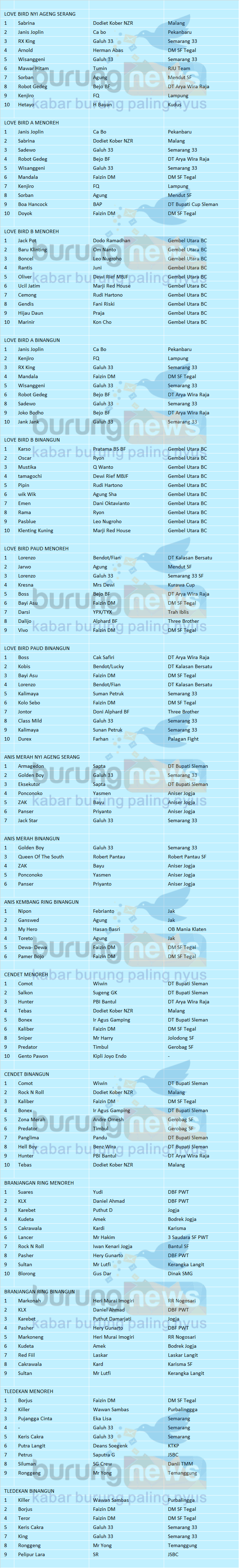 Armagedon milik Sapta tampil sebagai bintang lapangan pada even tahunan Bupati Cup 2 Kulon Progo DIY, Minggu 25 November 2018. Armagedon sukses meraih juara 1 dan 2 pada kelas anis merah dan sekaligus mengibarkan Duta Bupati Cup Sleman.