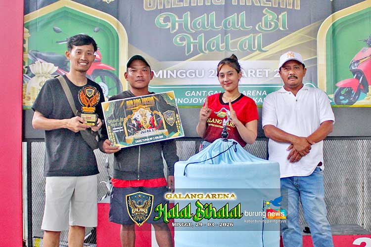 “Alhamdulillah, hari ini acara Halal Bihalal cukup sukses, ini tadi untuk hadiah utama sudah diambil semua untuk cucak hijau sepeda listrik keluar dan untuk hadaih utama sepeda motor Revo keluar juga. Alahamdulillah antusias untuk pemain di sekitaran Galang Arena cukup bagus dan kuat,” kat abah Samsul.