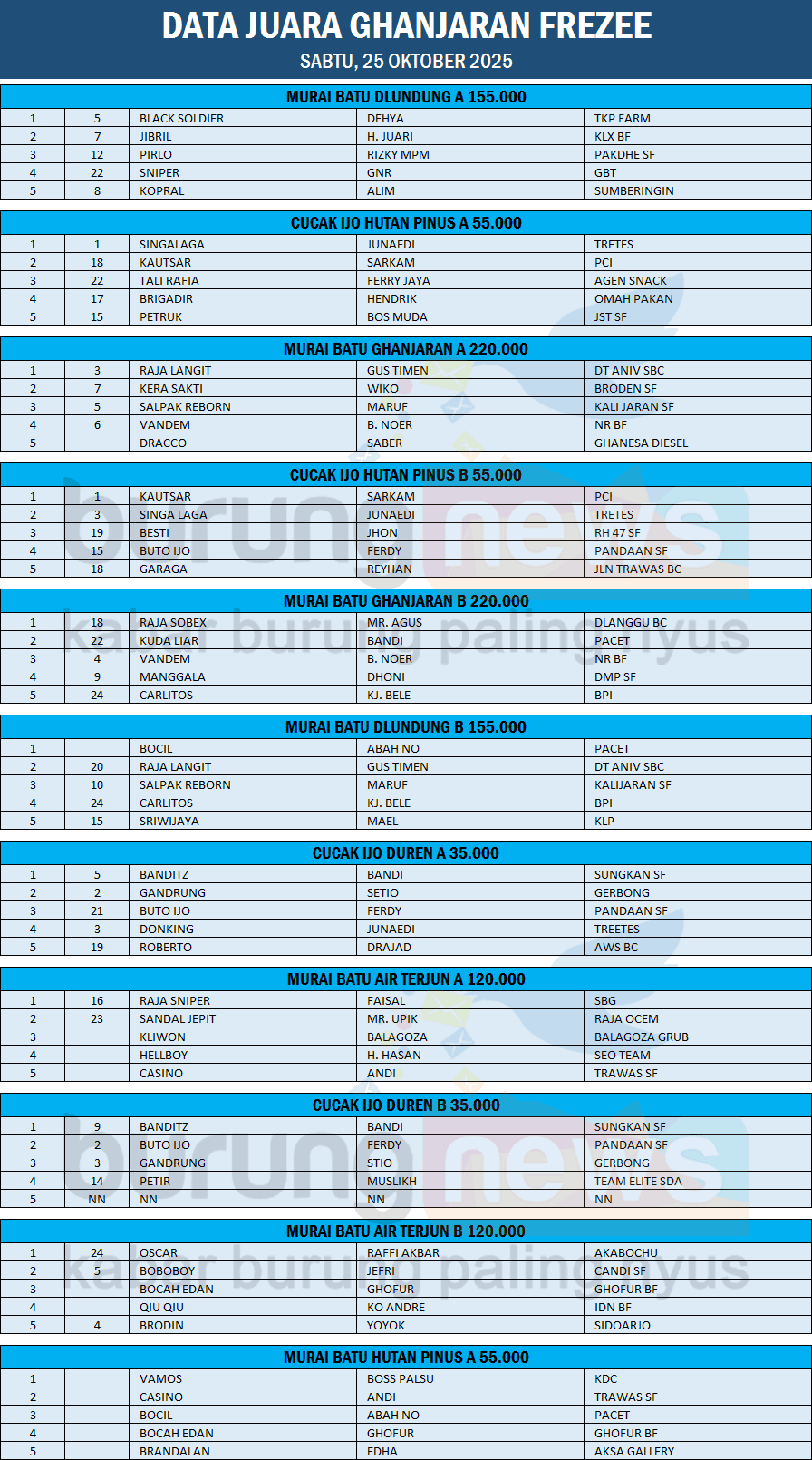 Rutinan Ghanjaran Stadium, Sabtu, 25 Oktober 2025, yang berlokasi di Trawas, Kabupaten Mojokerto berjalan sukses. Cuaca gerimis tak mengurangi niat kicaumania untuk berlomba di gantangan ini. Bahkan banyak yang dari luar kota.