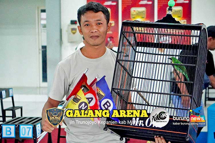 Cucak hijau Lindu Aji milik Guruh Sakti dari SKM Maju tampil mumpuni di Kamis Rutin Galang Arena, 09 April 2026, di Jl. Trunojoyo, Kepanjen, Kab. Malang.
