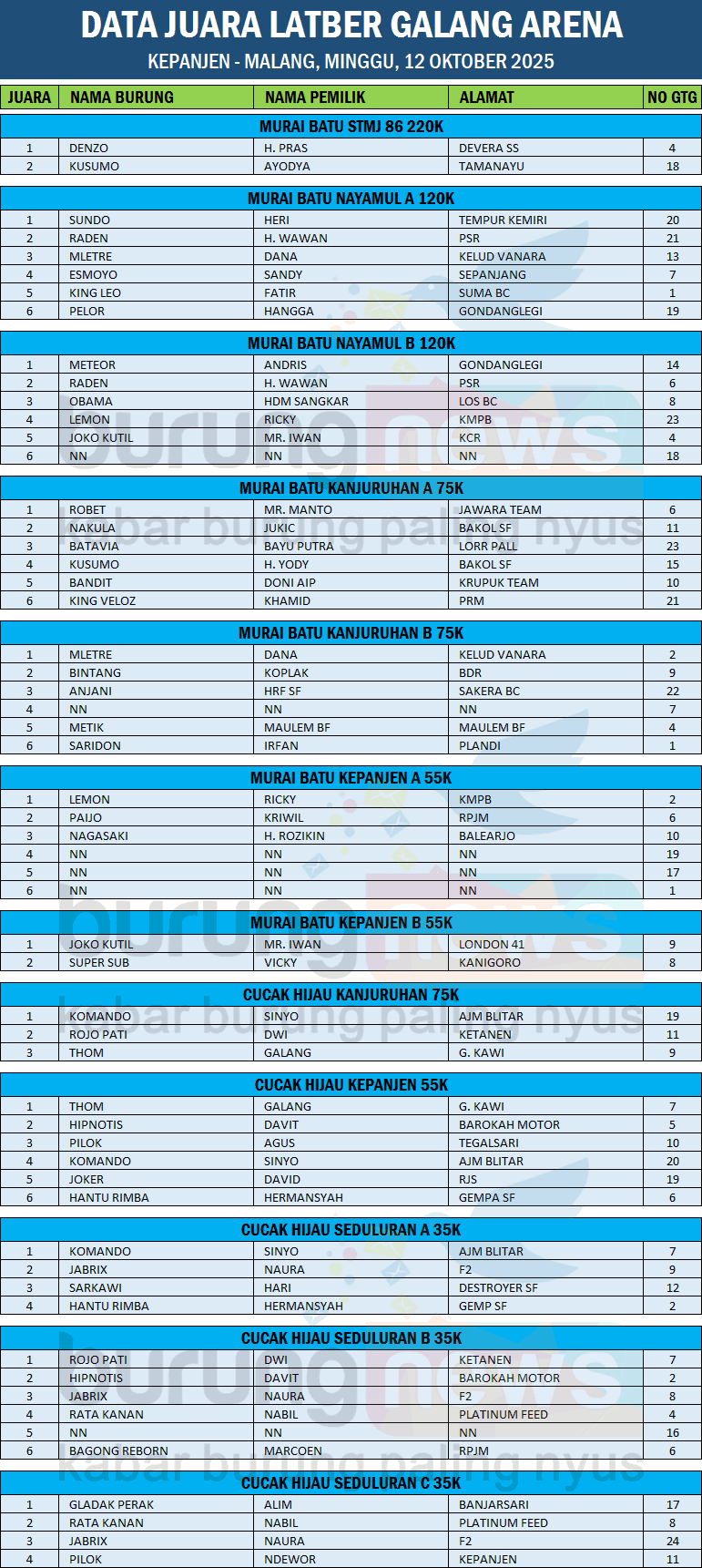 KATA KUNCI: data juara latber galang arena kepanjen malang galang feat kmb feat kmn mb denzo