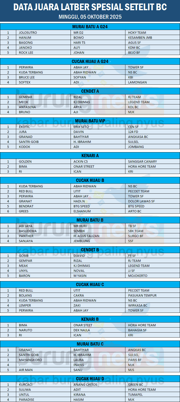 DATA JUARA LATBER SPESIAL SATELIT BC - MINGGU, 05 OKTOBER 2025