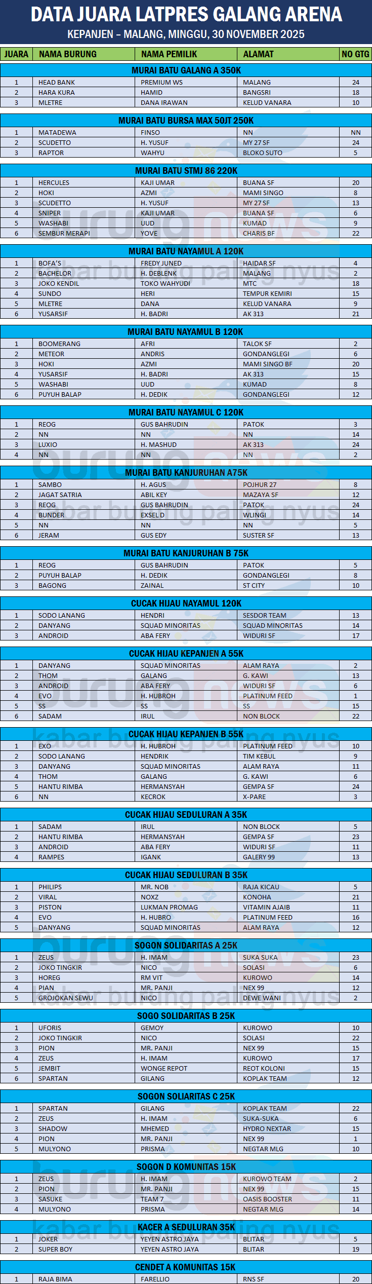 KATA KUNCI: data juara latpres galang arena kepanjen malang head bank