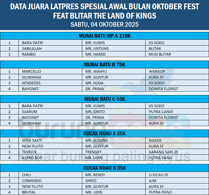 DATA JUARA LATPRES SPESIAL AWAL BULAN OKTOBER FEST FEAT BLITAR THE LAND OF KINGS