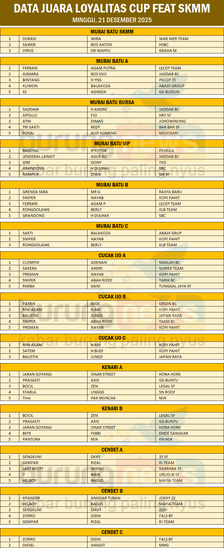 DATA JUARA LOYALITAS CUP FEAT SKMM, MINGGU, 21 DESEMBER 2025