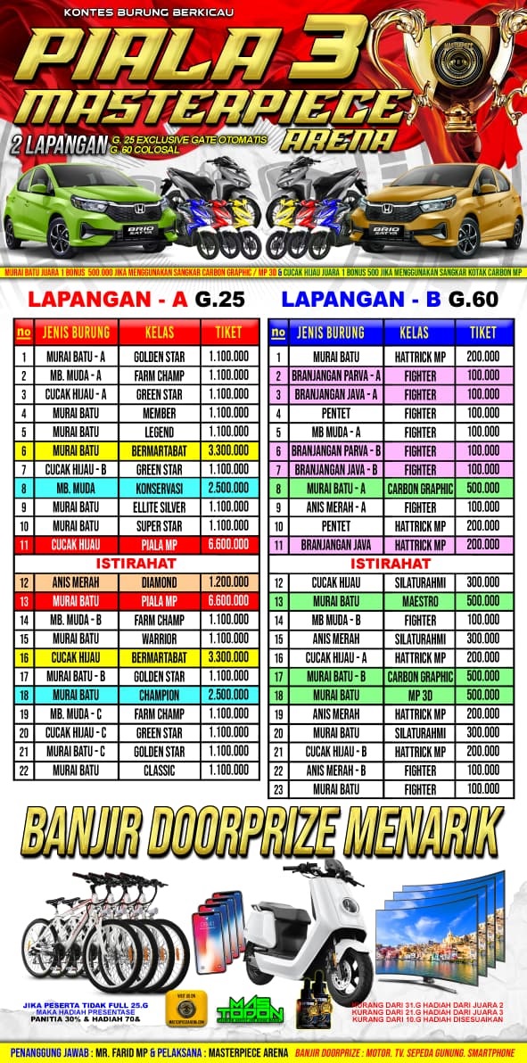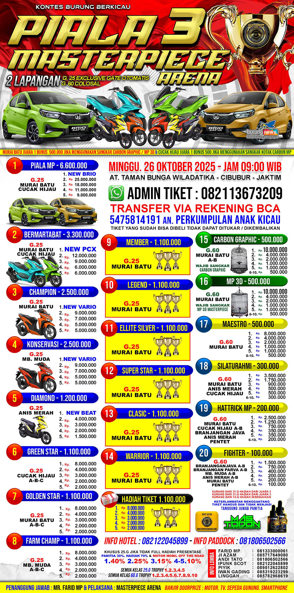 JADWAL PIALA MASTERPIECE ARENA 3, KLIK DI SINI