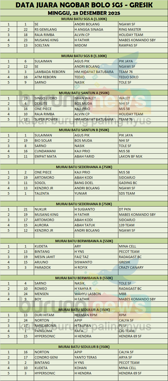 DATA JUARA NGOBAR BOLO SGS - GRESIK