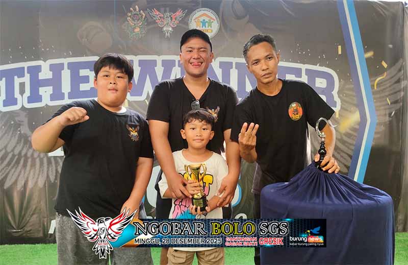 Singo Edan milik Andri Bolang dan Sulaiman andalan Agus PIK berhasil menjadi yang terbaik di dua kelas utama NGOBAR (Ngopi Bareng) Bolo SGS di gantangan Gagak Sakti Gresik hari Minggu, 28 Desember 2025.