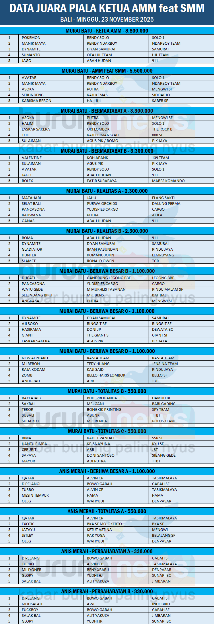 DATA JUARA PIALA KETUA AMM feat SMM - BALI (MINGGU, 23 NOVEMBER 2025)
