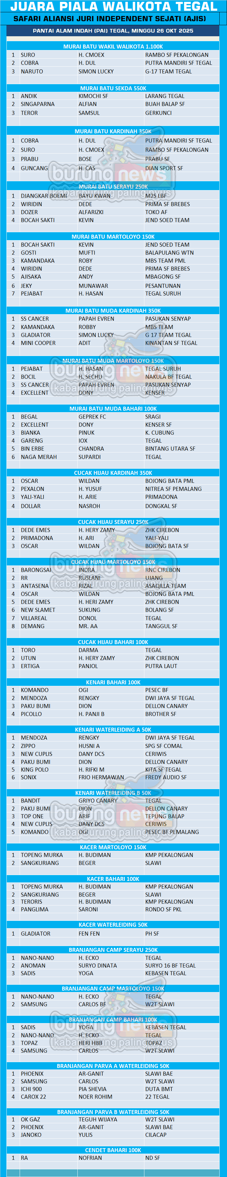 KATA KUNCI: ajis piala walikota tegal piala camat jepara budiman s spt