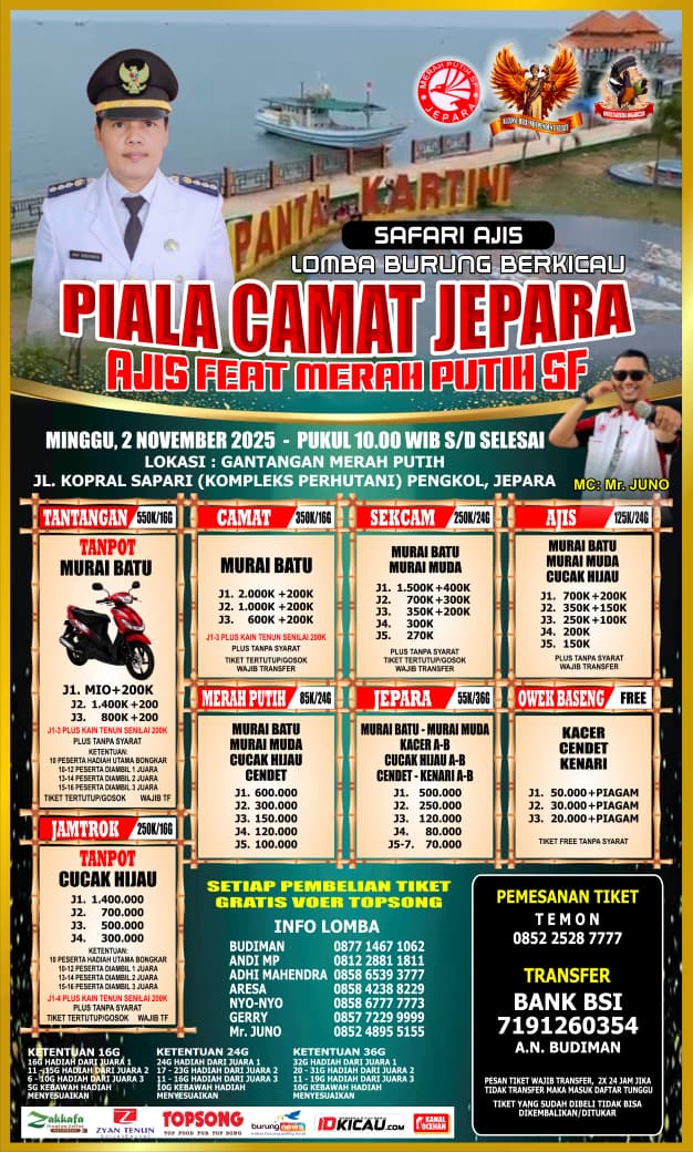 Setelah dari Tegal, Safari AJIS berikutnya adalah bekerjasama dengan Putih SF menggelar Piala Camat Jepara pada 2 November 2025. Brosur dan Jadwal bisa dilihat di bawah ini. {anton, maltimbus]