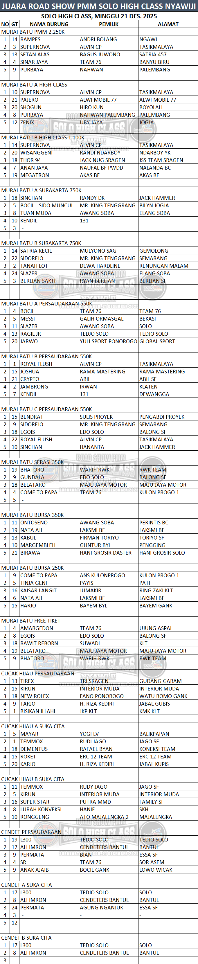 DATA JUARA ROAD SHOW PMM SOLO HIGH CLASS NYAWIJI