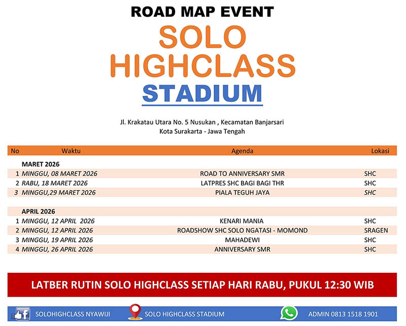 Kemeriahan senantiasa tersaji setiap kali gelaran di Solo High Class, sebagaimana pada Minggu 8 Maret 2026, ketika berlangsung Road to Anniversary SMR Feat SHC. Kendati beberapa kelas tidak full, namun secara umum event ini termasuk ramai dan sukses.