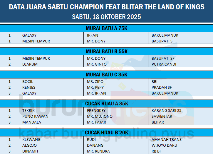 DATA JUARA SABTU CHAMPION FEAT BLITAR THE LAND OF KINGS