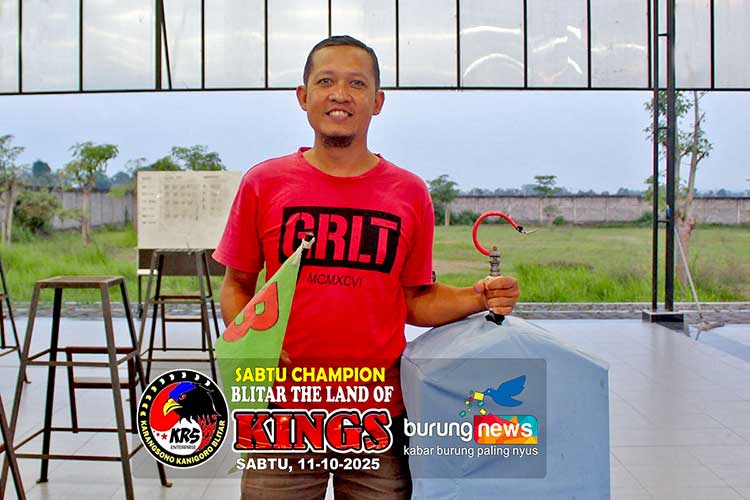 Murai batu Sido Mukti milik Mr. Kholis dari Sumber Jati Kademangan berhasil meraih juara satu di leg dua di laga Sabtu Champion Feat Blitar The Land Of King, di KRS Enterpise, Karangsono, Kanigoro Blitar (11/10/2025).