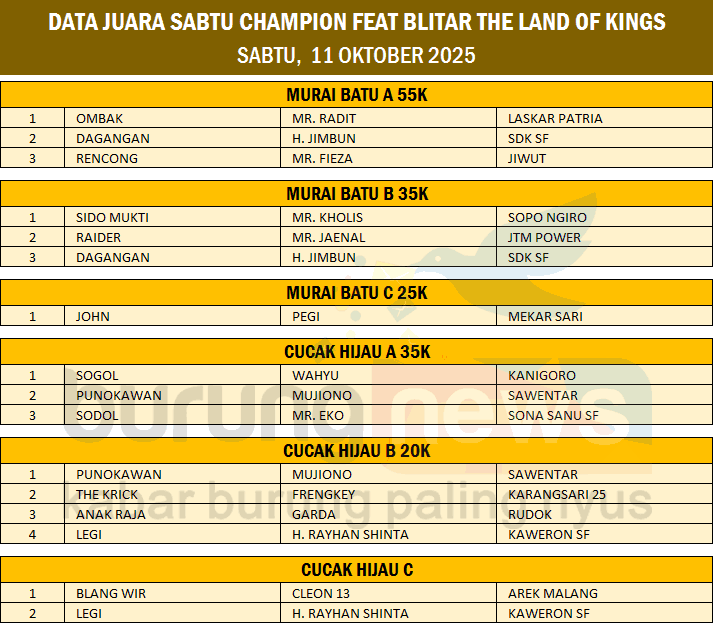 DATA JUARA SABTU CHAMPION FEAT BLITAR THE LAND OF KINGS