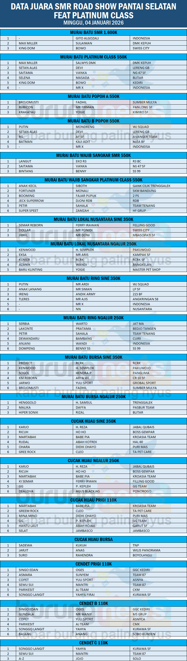 DATA JUARA SMR ROAD SHOW PANTAI SELATAN FEAT PLATINUM CLASS, MINGGU, 04 JANUARI 2026