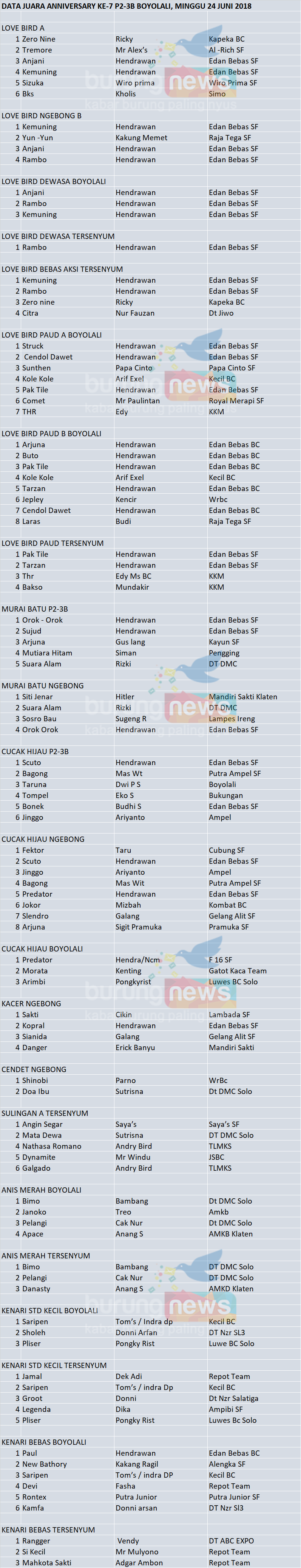 DATA JUARA 7TH ANNIVERSARY P2-3B - ROAD TO BOYOLALI CUP 4, MINGGU 24 JUNI 2018