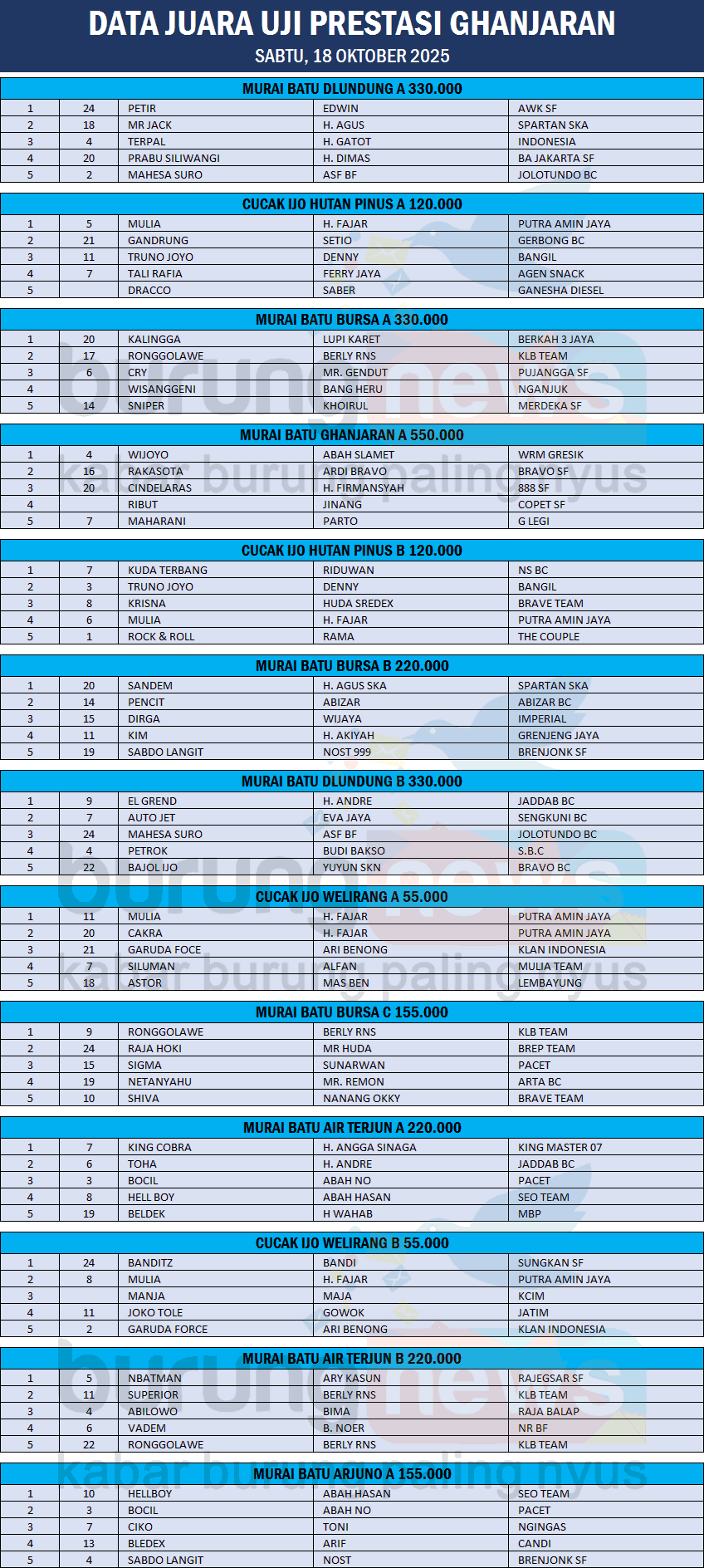 KATA KUNCI: data juara uji prestasi ghanjaran stadium berly rns mb batman