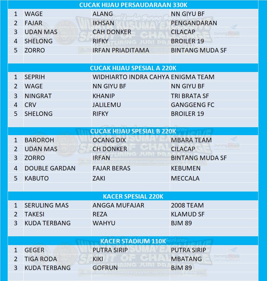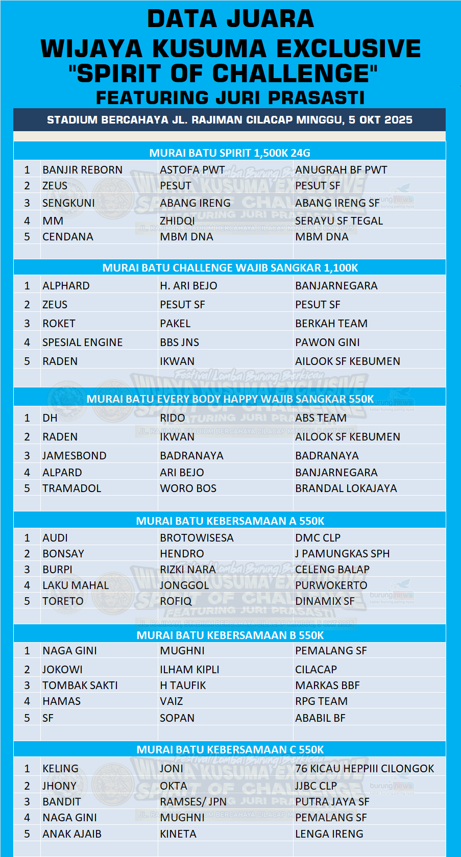 DATA JUARA WIJAYA KUSUMA EXCLUSIVE FEATURING JURI PRASASTI CILACAP