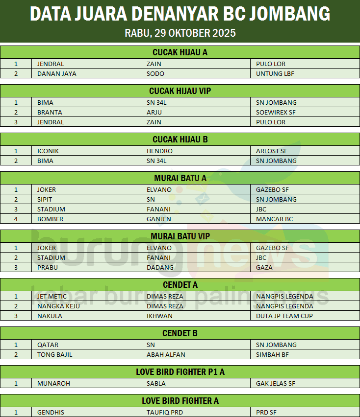 Pemain lain yang meraih sukses besar di gelaran Denanyar BC hari ini, diantaranya adalah Elvano dari Gazebo SF. Menurunkan Joker di kelas Murai Batu A dan Vip, Joker sukses melibas podium puncak.