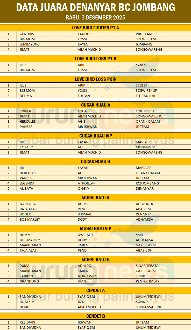 Mulai nemu setingan yang klop, Ivan joki Murai Batu Hummer resmi ngunci jadwal buat tampil di Anniversary ke-7 Denanyar BC, 28 Desember 2025. Bukan cuma murai, para pemain Love Bird pun siap all out di ajang pamungkas akhir tahun ini.