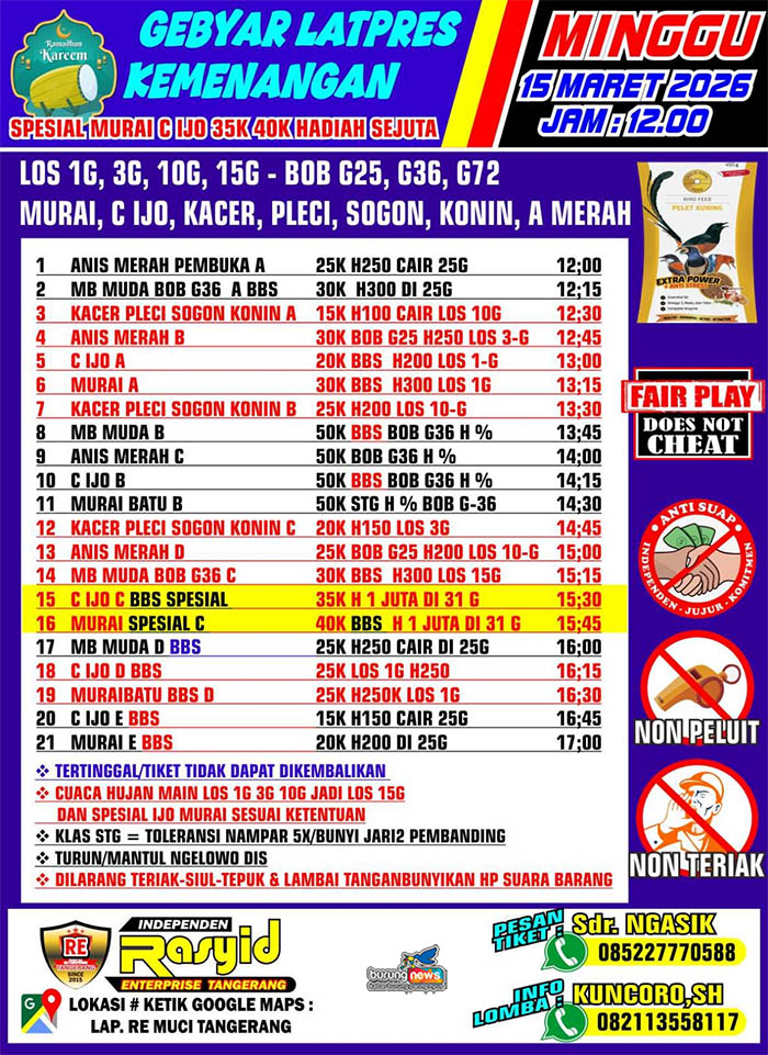GEBYAR LATPRES KEMENANGAN RE MUCI GTG RE MUCI Minggu, 15 Maret 2026 Jam 12:00 Diliput oleh burungnews.com DOWNLOAD BROSUR