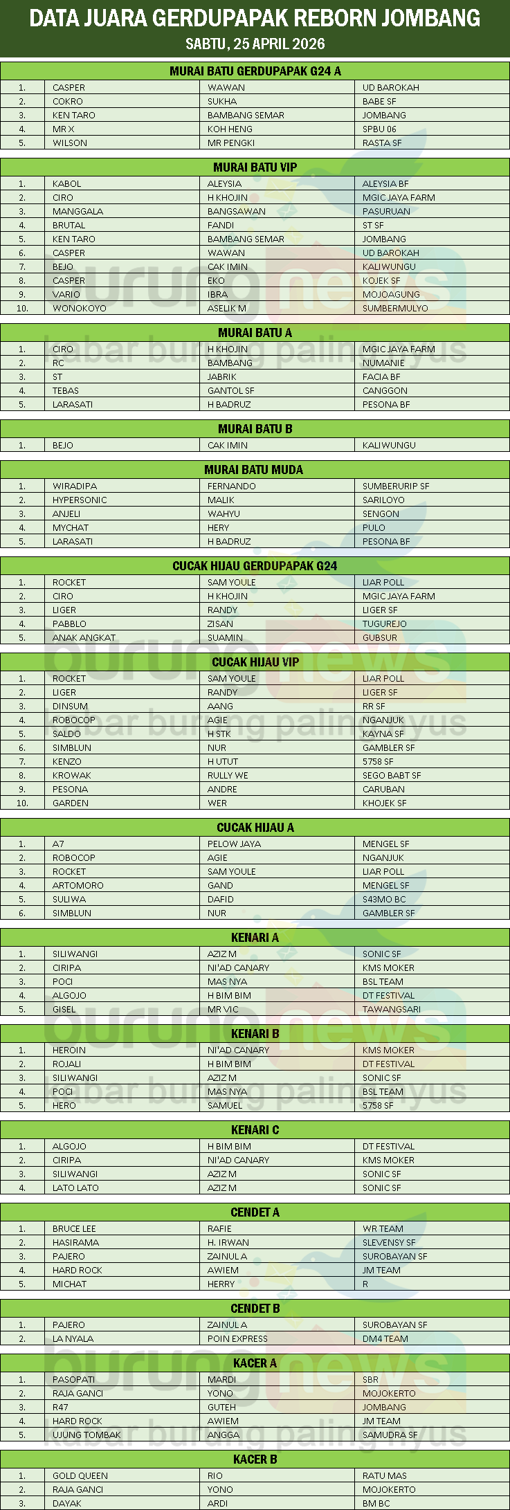 Yang paling gila, kelas Murai Batu, Cucak Hijau, dan Kenari dengan kuota G24 full gantangan, ludes tanpa nyisa selembar tiket pun! Full house total. Ini bukti kalau magnet Gerdupapak Reborn emang gak main-main.
