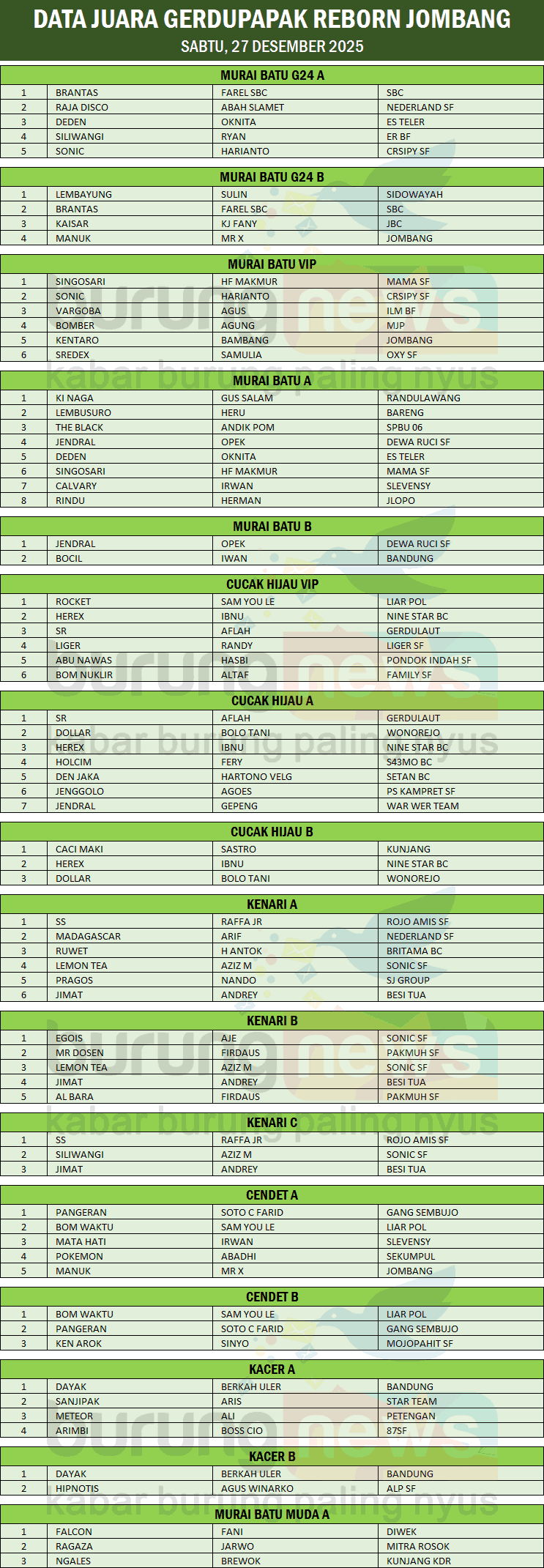 KATA KUNCI: gerdupapak reborn data juara mb brantas kenari ss anniversary jbc