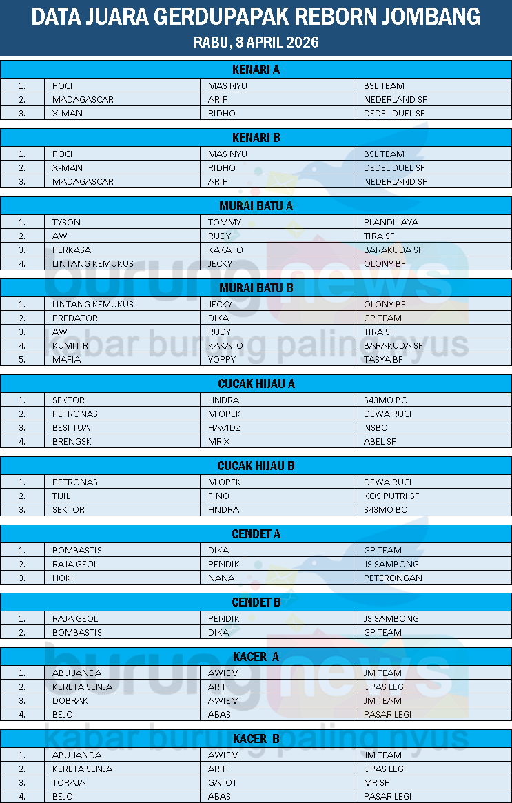 Dan itu bukan sekadar bayangan, tapi beneran kejadian di Petronas, cucak hijau yang nongkrong di nomor 25 kelas Cucak Hijau B di gelaran Gerdupapak Reborn, Lapangan Waduk Parimono, Jombang, Rabu 8 April 2026.