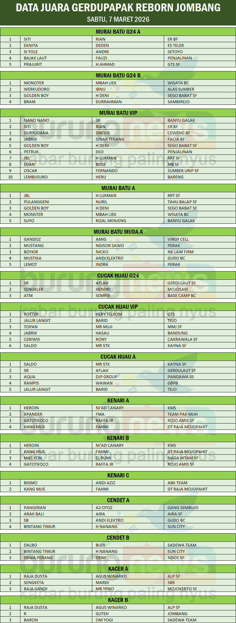 Persaingan di kelas ekor panjang ini pun dipastikan panas. Deretan gaco papan atas turun dengan materi lagu mewah, volume tembus, dan gaya sujud khas Murai Batu yang selalu bikin gantangan makin greget. Nggak heran kalau kelas ini selalu jadi primadona sekaligus pemburu podium emas di setiap gelaran Gerdupapak Reborn.