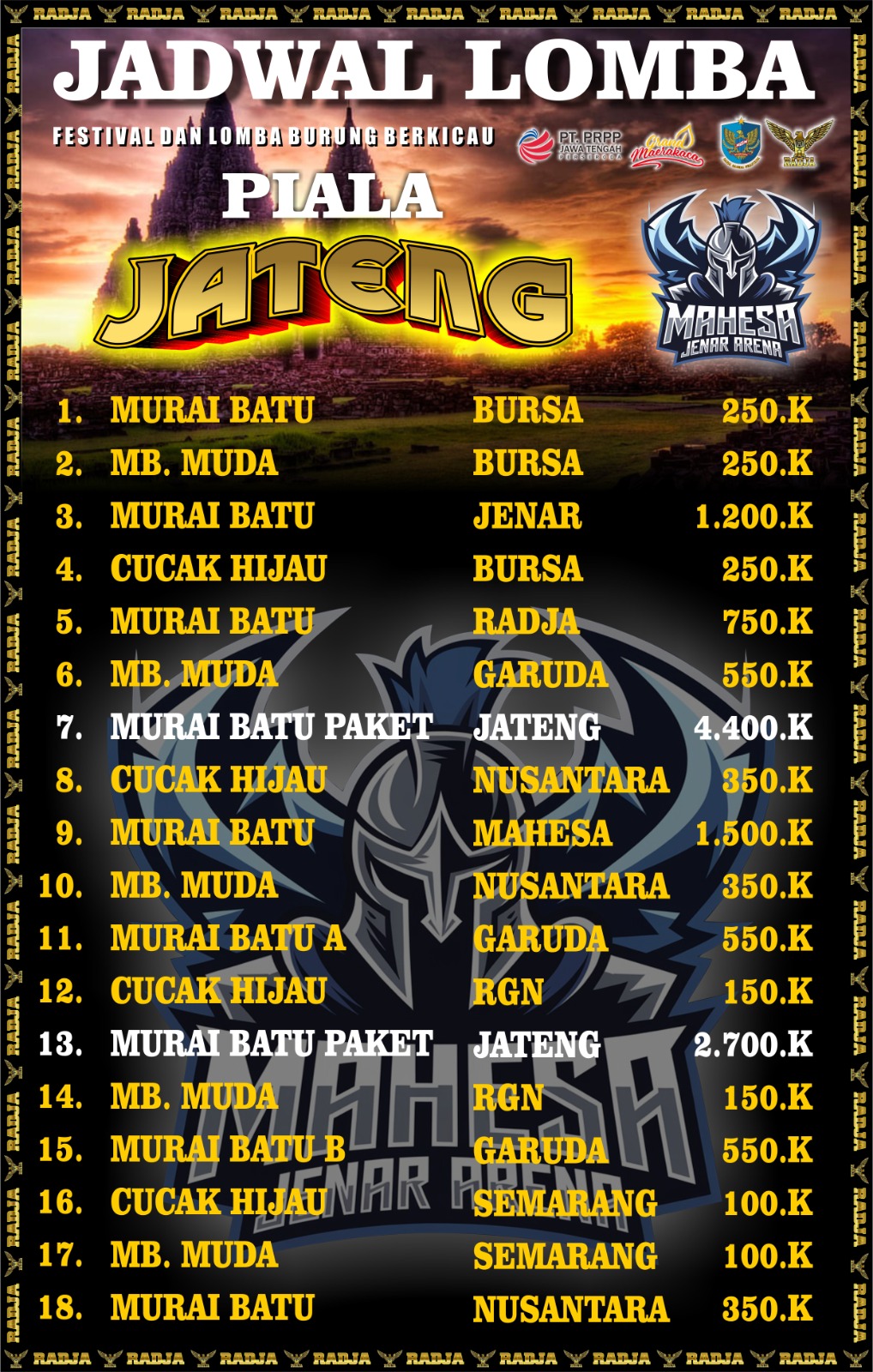 KATA KUNCI: mahesa jenar arena piala jateng asep dm hadiah mobil baru senilai 100 juta vario senilai 21 juta beat senilai 14 juta revo senilai 10 juta