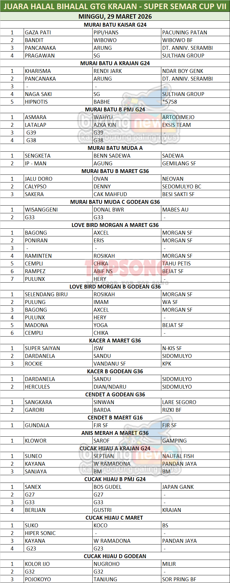 HALAL BI HALAL GTG KRAJAN - SUPER SEMAR CUP VII + DATA JUARA