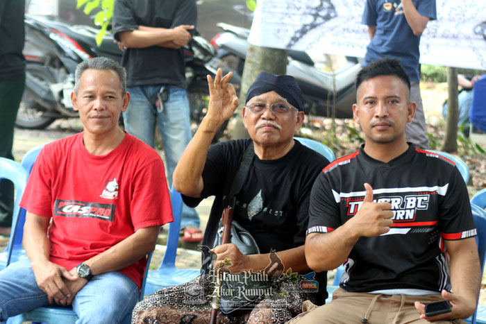 “Alhamdulillah, sampai hari ini masih diberikan kesehatan, dan bisa hadir meramaikan kelas kacer kumpul satu titik bersama para seniman hitam putih, duduk sama rendah, berdiri sama tinggi, dengan satu tujuan yang sama menggairahkan lagi kelas kacer.”