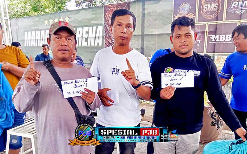 Murai batu SR milik H Fajar Mespro, nyaris menggondol dua kemenangan pada gelaran latber rutin spesial PJB di gantangan Maharaja Arena Bengrah - Surabaya hari Sabtu, 28 Februari 2026. Sedangkan Jackpot milik Brian berhasil meraih juara di kelas utama. ...
