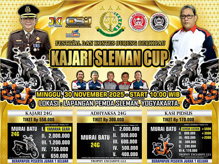 Lomba burung bertajuk Uji Prestasi di Ghanjaran Stadium, Sabtu, 8 November 2025 berjalan lancar dan sukses. Kelas cucak hijau peserta full dari awal hingga akhir. Sedang di kelas murai batu, hanya ada kekurangan peserta di sesi utama tiket 550K.